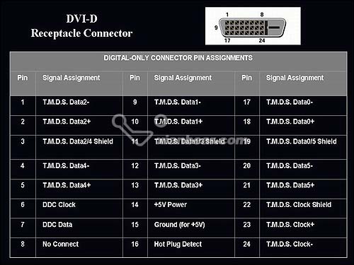 模擬視頻信號(hào) (垂直掃描) 場(chǎng)同步信號(hào) ( 在 DVI-D 中, 8 是 No Connect 就是 空腳, 什么也沒(méi)有連接 ) |