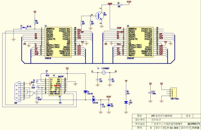 說明:高壓并行編程,能將絕大多數各種鎖死芯片恢復到出廠默認,特別是對復位也禁用的芯片。此高壓并行編程器由一片M8作為主控制芯片,將通過串口送來的PC各種指令和編程數據進行轉換后,對目標芯片進行編程處理,目前可直接支持M8和M16的編程,由于不需要M16的編程,故將原理圖修改了一下。