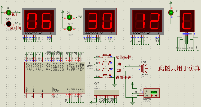 功能:時鐘顯示,溫度顯示,可調(diào)時間,按鍵發(fā)聲。