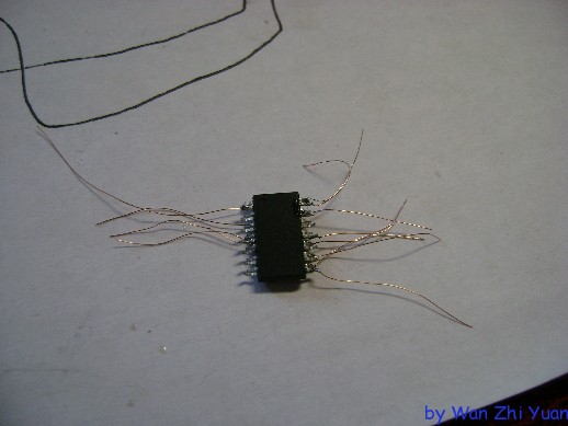 首先上PL2303,要經(jīng)過特殊處理喲。注意引腳……畢竟SSOP28 0.6MM的腳距太難操作,我只好這樣了。現(xiàn)在掰彎一邊了……