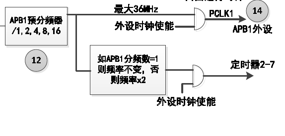 由于RCC->CFGR時鐘配置寄存器中 APB1設置為2分頻,所以TIM3就是其倍頻==72M
