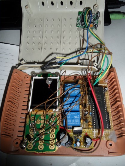 1. 原料清單:舊手機一臺(能打電話就行),stc89c52單片機一塊,5v繼電器3個,1n4148二極管3個,1n4007二極管2個,9012三極管 3個 ,8050三極管1個,11.0592晶振1個,20p獨石電容2個,104獨石電容1個,電解電容1000uf、470uf、0.1uf各一個 10uf兩個,LM317三端穩壓1個,200Ω、400Ω、1K電阻各一個。洞洞板一塊,一個外殼(筆者的是路由器的外殼),一張0月租0低消的手機卡,熱釋紅外感應模塊一個。(成本100元以內)