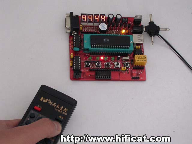 將我們事先準備好的遙控器解碼程序用A51編程器燒入AT89S51芯片,然后將芯片插在增強型51實驗板上。(程序在配套光盤內自帶)