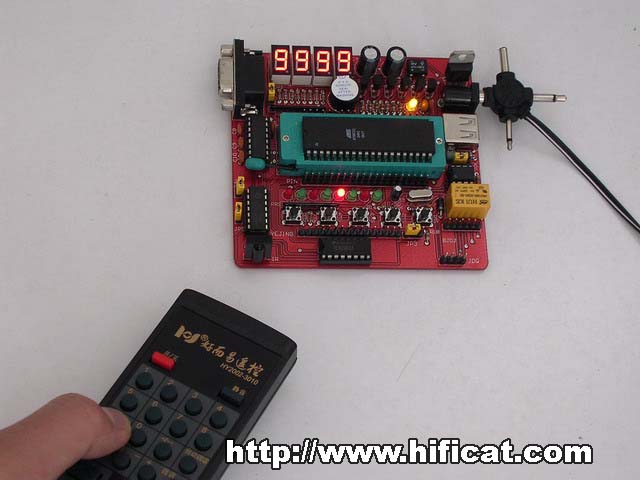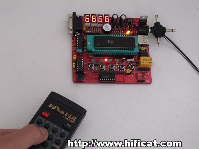 我們實驗的功能是:通過按遙控器上的數字鍵,分別在增強型51實驗板上通過數碼管來顯示出來,完成紅外線遙控器的鍵值解碼。其解碼程序請參見配套光盤,程序語法為C語言版。