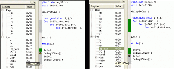 KEIL軟件仿真測量延時程序延時時間