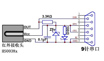利用電腦串口延長線插上接收部分,可以說是即插即用,而且支持熱插拔,因為這部分是利用串口上的5,7,8,9針加上穩壓二極管供電的,還能驅動一個發光二極管作為工作指示燈,效果不錯。