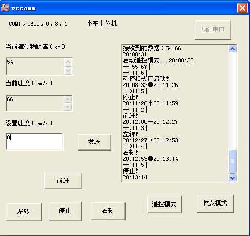 用了一下不錯,可以用。最難的就是發送了,因為我使用了很多按鈕每次執行按鈕都要有返回值確認單片機是否是正常收到,為了簡便起見我PC發到單片機上的都是1個字節,而單片機發到PC上的都是2個字節。而發送小車的速度值是不能超過1個字節,為了不和之前確認數發生檢測錯誤,所以我將編輯框的數據先加上11再在單片機里減去11。這個涉及到數據類型轉換的問題,int char VARIANT CString CByteArray,我終于明白了,為什么數據類型也是一門課。。。