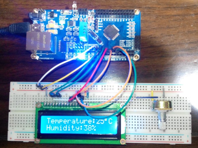 程序編譯無誤后,通過ST-LINK寫入到Rainbow中,將DHT11溫濕度模塊插入到Rainbow中,就可以在液晶上直觀顯示出當前的溫濕度。