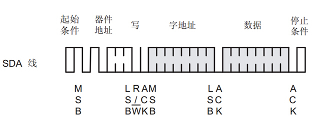 然后再發(fā)送要寫入數(shù)據(jù)的地址,收到應(yīng)答再寫入數(shù)據(jù),最后是停止信號(hào)