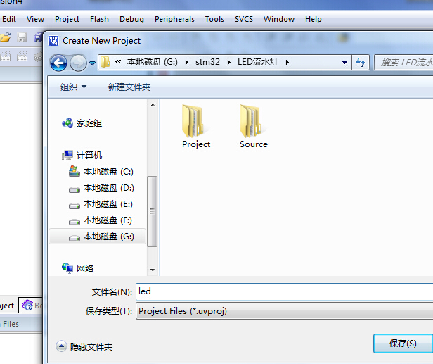 為自己工程項目名稱,在 groups雙擊后改名字為“led流水燈”,在這個組 下創建 User,Driver,RVMDK 和