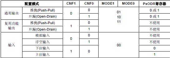 、 推挽式輸出、 推挽式復用功能、 開漏復用功能