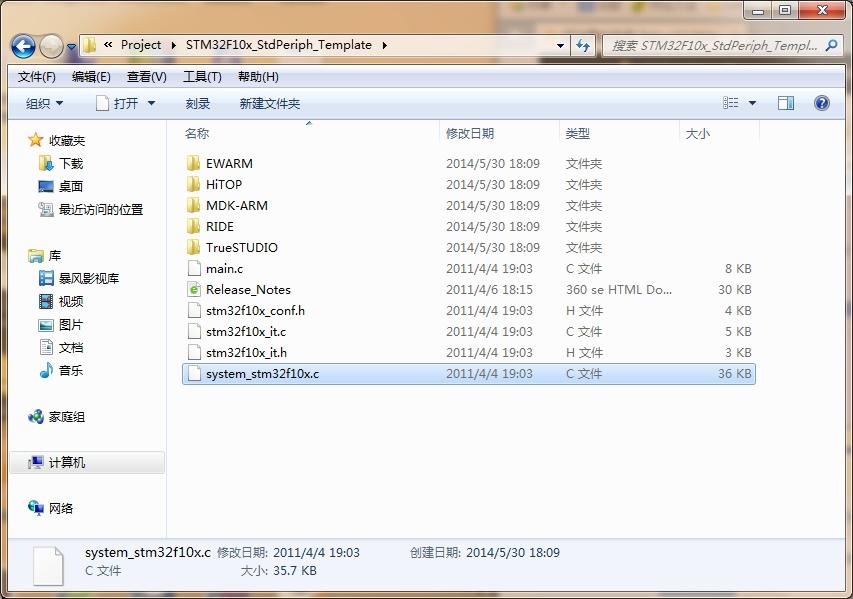 其main.c stm32f10x_conf.h stm32f10x_it.c stm32f10x_it.h system_stm32f10x.c