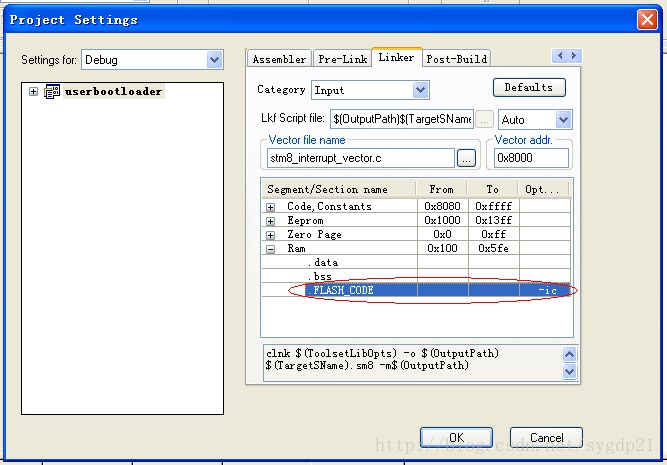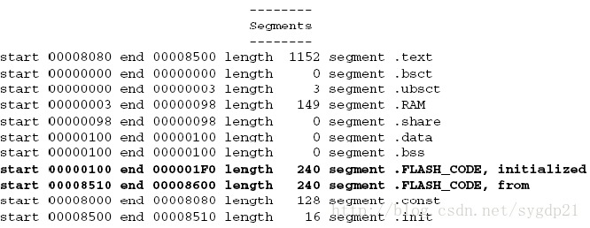 設置段名‘.FLASH_CODE’,注意同時設置options為‘-ic’,ic的意義為moveable code。